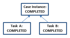 | completed | The complete transition triggers for a task when its actual work is done. For a stage, this transition triggers when all contained tasks/stages are either completed, terminated, or disabled. With automatic completion enabled, only required plan items have to reach theses states. A task/stage in state completed is removed from the runtime database. |