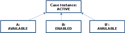 ENABLED. During the transition to the stateENABLED, the repetition rule is evaluated. As a consequence that the variablescoreis less than50, a new instance B’ of the corresponding task is created. The instance B’ moves into stateAVAILABLE.