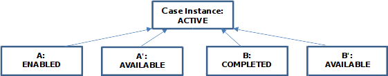- A user manually starts and completes task B and the instance reaches the state