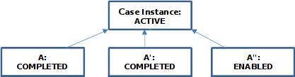 COMPLETED. - The completion of instance B’ satisfies the entry criterion (Sentry_2) of A’. So that A’ becomes