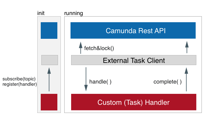 Handlers can be used to implement custom methods which are invoked whenever an External Task is fetched and locked successfully. For each topic subscription an External Task handler interface is provided.