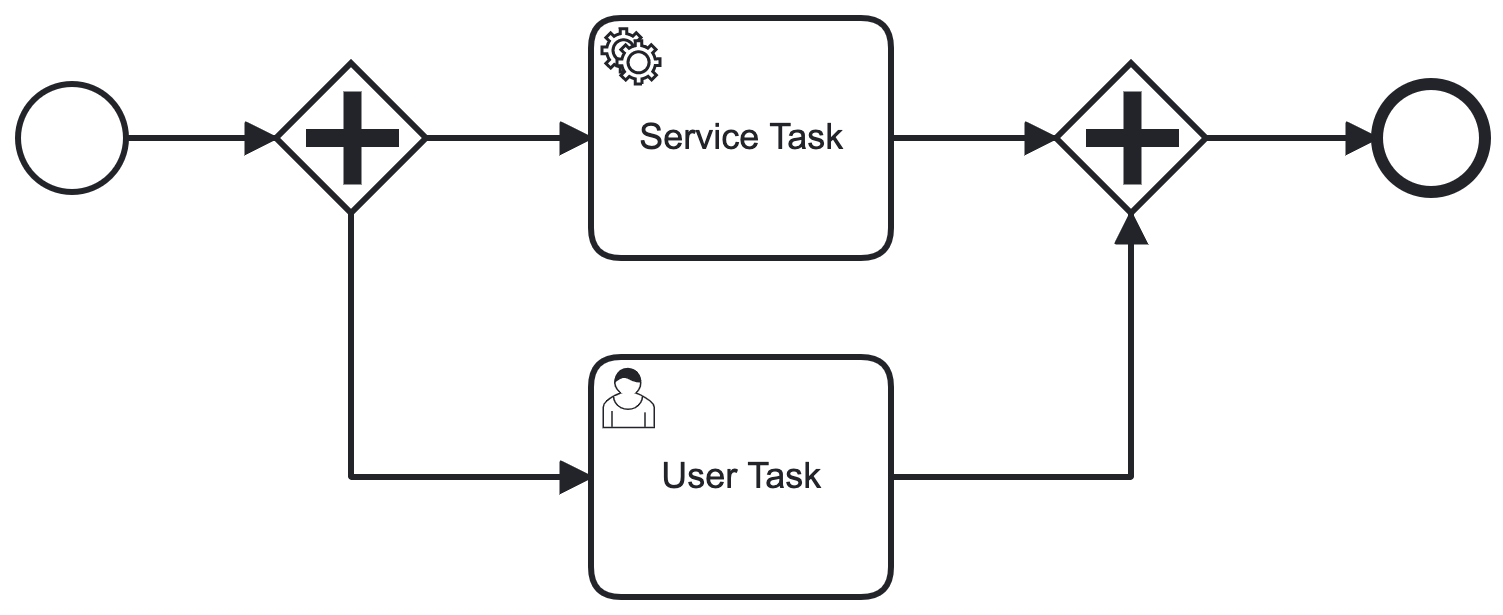 Even more complex processes can be created with a few lines of code with the standard BPMN model API.