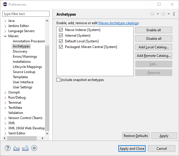 - Search for the plugin “Maven Archetype Catalogs” and click on “Install”.