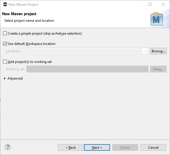 Sometimes the creation of the very first Maven project fails in Eclipse. If that happens to you, just try it again. Most of the times the second try works. If the problem persists, contact us.