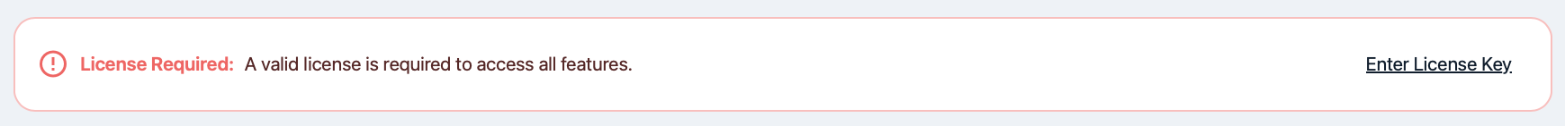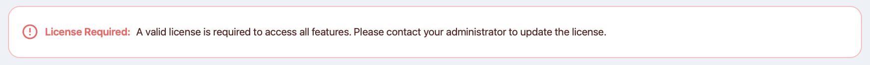 Whenever you see one of the following messages, a valid license key must be entered.