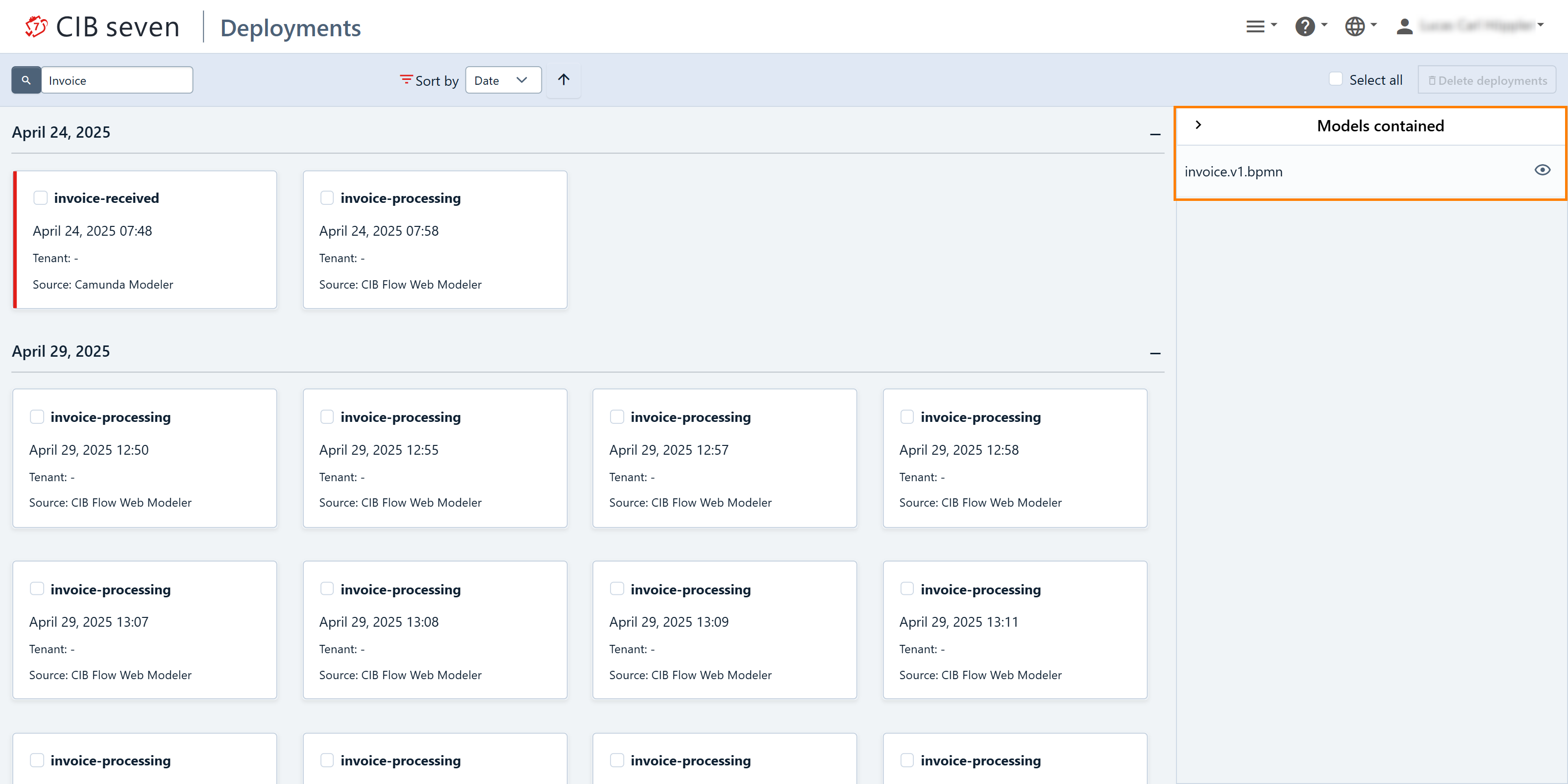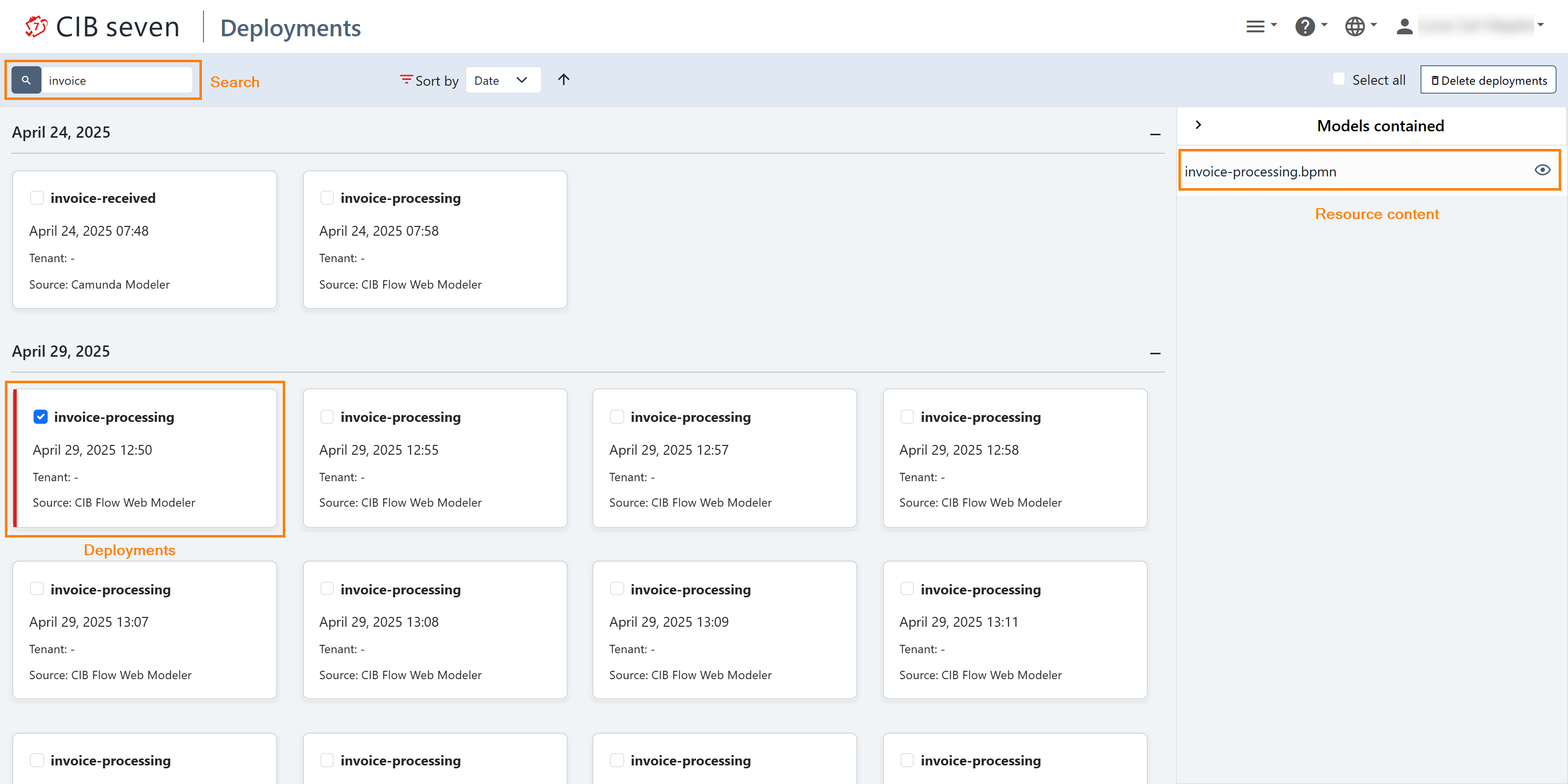 Use the search field at the top of the deployment list to find specific deployments. You can search using the unique deployment ID, and partial name matches are also supported.