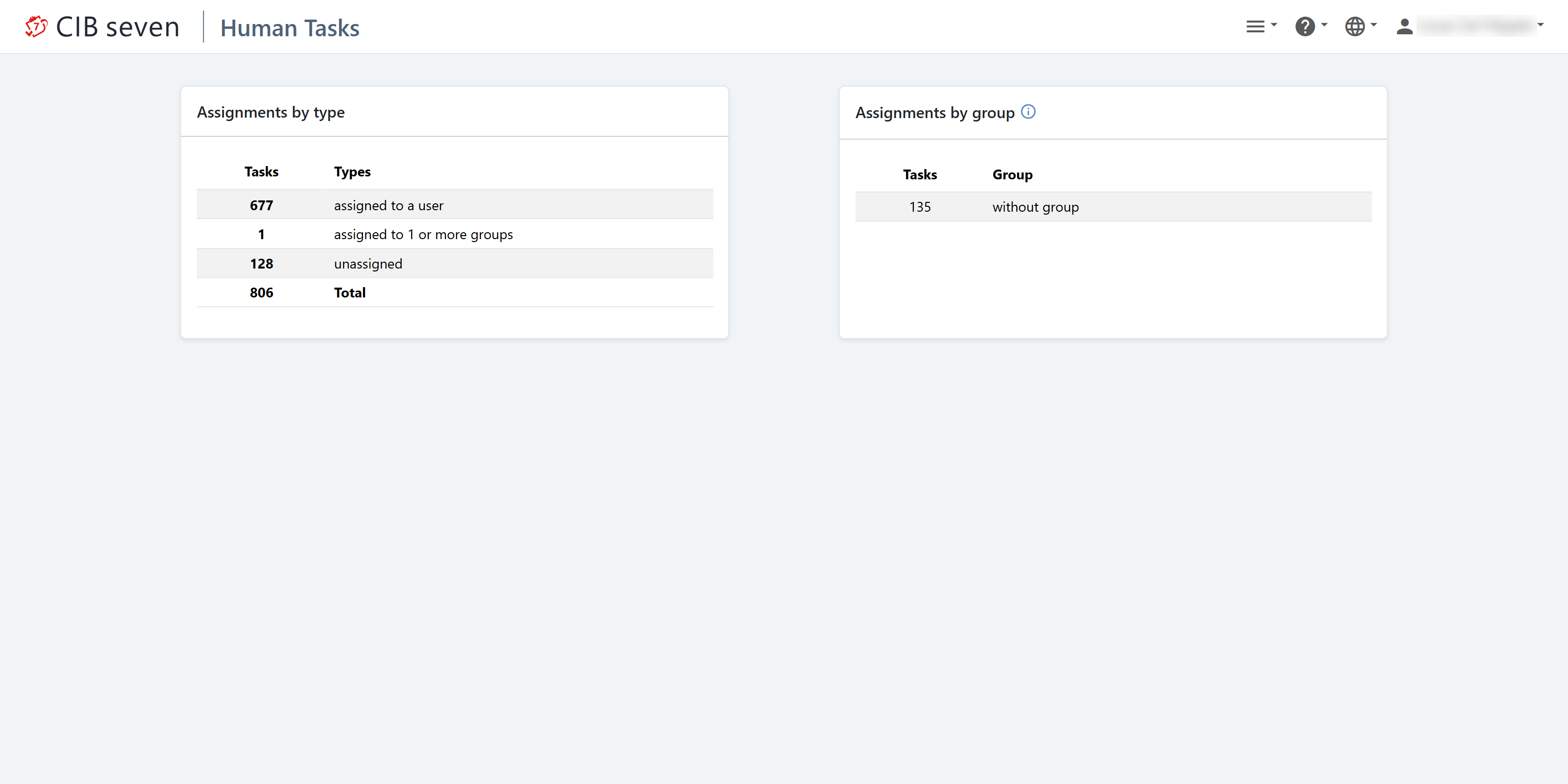 You can use the open tasks dashboard to see how the open tasks are distributed by individual factors. Refer to the Cockpit Plugins section for information about adding a custom open task dashboard plugin.