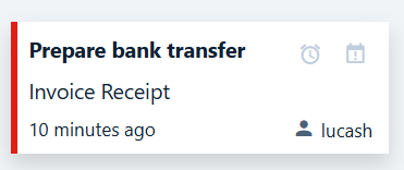 In the upper section of a task, you can set a due date and a follow-up date for the selected task. The due date specifies when the task should be completed, while the follow-up date serves as a reminder or for monitoring purposes. When you hover over the task with your mouse, the clock icon for setting the due date and the calendar icon for setting the follow-up date will appear (see also the following screenshot).