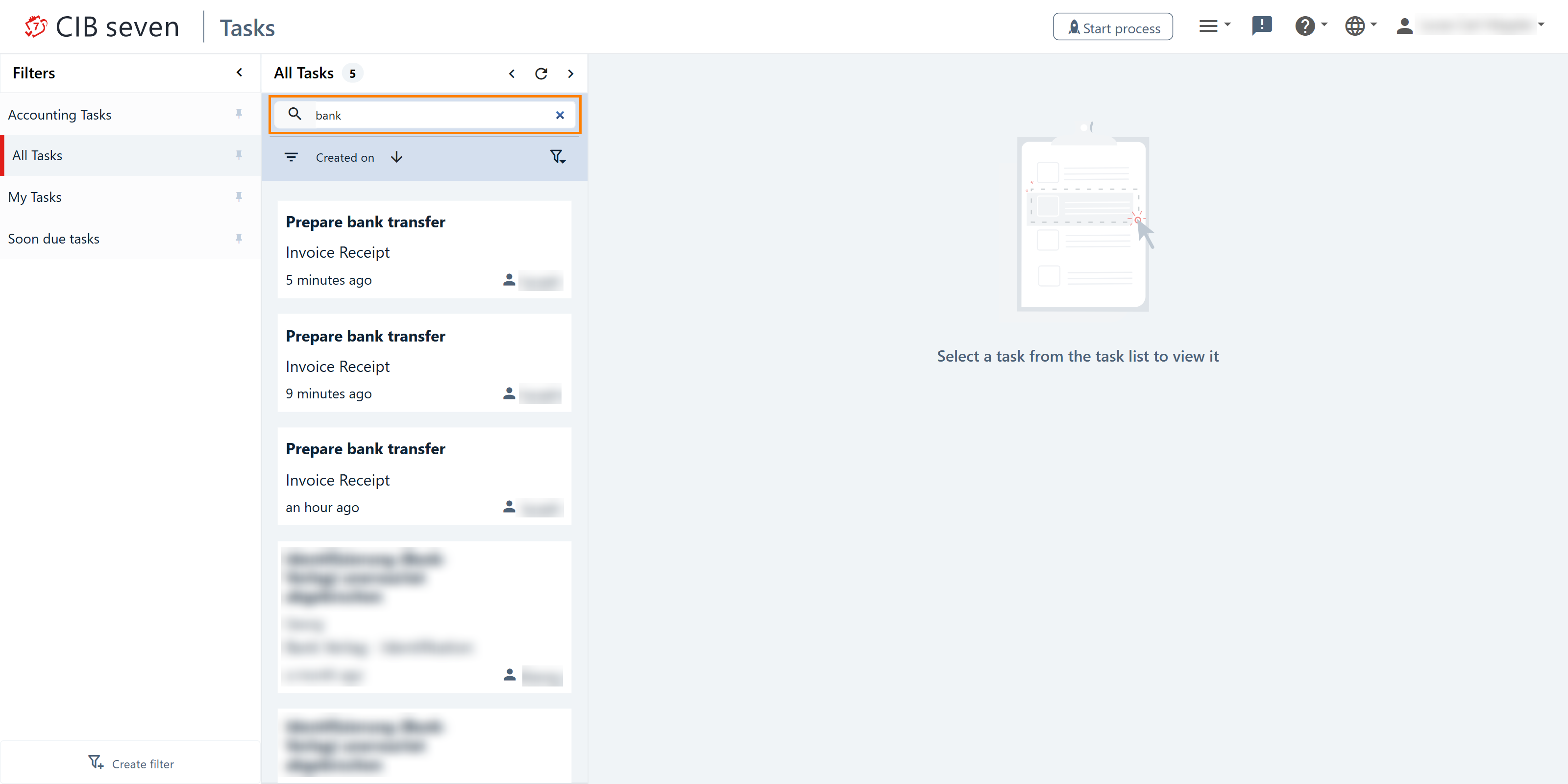 Above the filtered results, you’ll find a search bar that allows you to search for user tasks within the selected filter. You can search by task name, with the search being case-insensitive and supporting partial word matches.