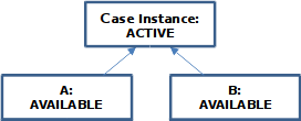 This case contains two human tasks A and B that are connected by a sentry. Task B gets ENABLED if any conditions are fulfilled and task A gets ENABLED if an instance of B completes. Furthermore both tasks are repeatable as long as the variable score is less than 50.