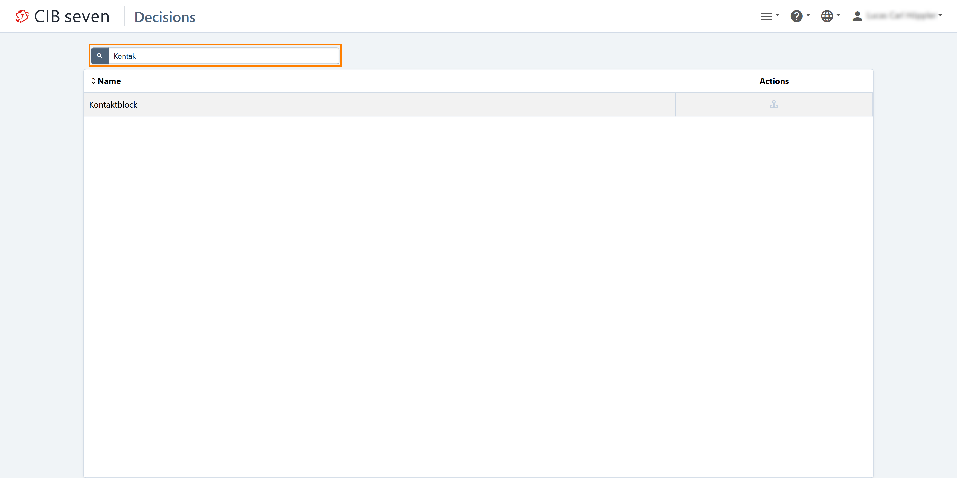 The Decisions dashboard in CIB Seven Cockpit is the entry point for decision monitoring. In the following screenshot, we select “Decisions” to get an overview of the deployed decision definitions.