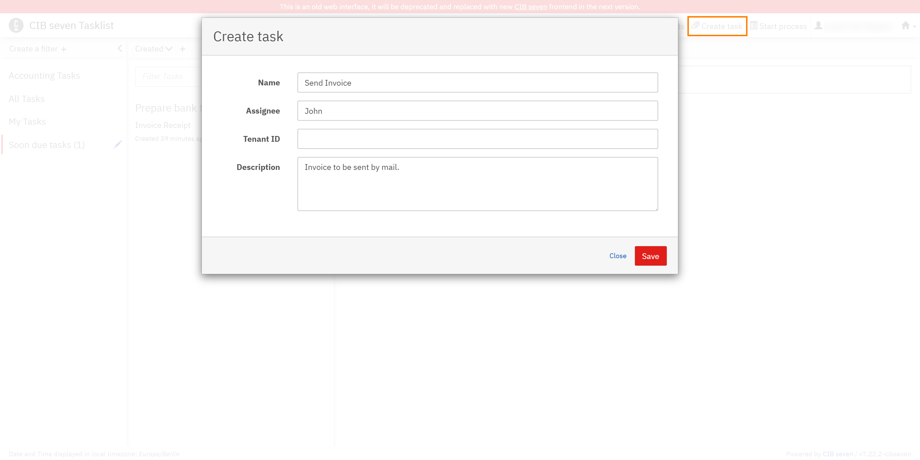 Tasklist offers you the possibility of creating standalone tasks. To do so, click on the Create task button. In the screen that appears, you can define a name of the task, the assignee and you can add a description. Once you click on Save, the task is created.